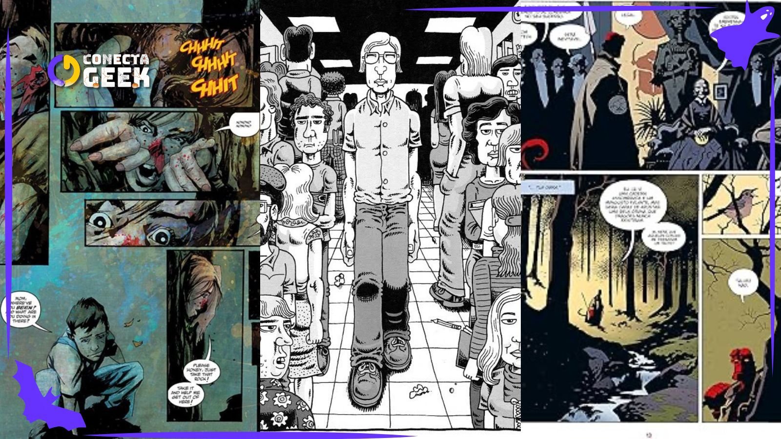 Entre eles, estão obras clássicas e modernas, assinadas por grandes nomes como Grant Morrison, Mike Mignola, Alan Moore e Scott Snyder, com artes impactantes e assustadoras de Dave McKean, Jacen Burrows, Jock e outros, garantindo que cada leitura seja tão perturbadora quanto fascinante.