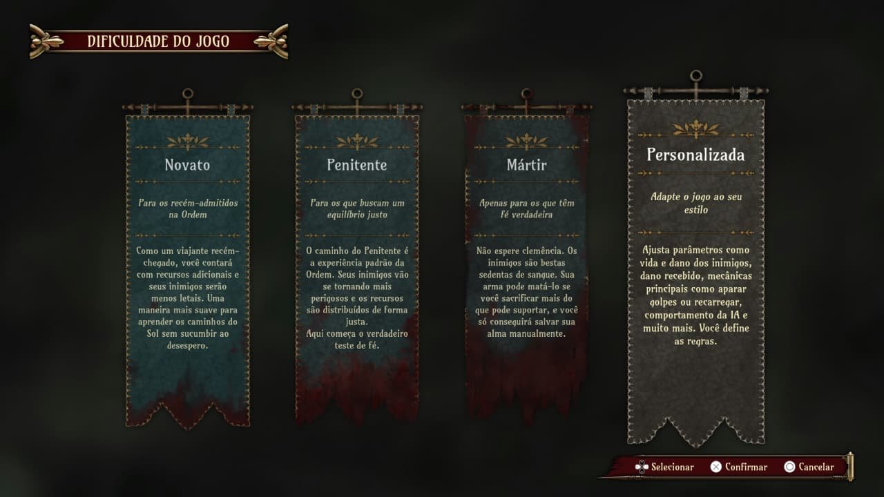Recomendo jogar na dificuldade mais alta. No modo normal, o jogo é muito fácil e não transmite a tensão que suas mecânicas sugerem. Já na dificuldade elevada, elas funcionam melhor. Também é possível personalizar parâmetros como força dos inimigos e escassez de recursos, como em “The Last of Us”.