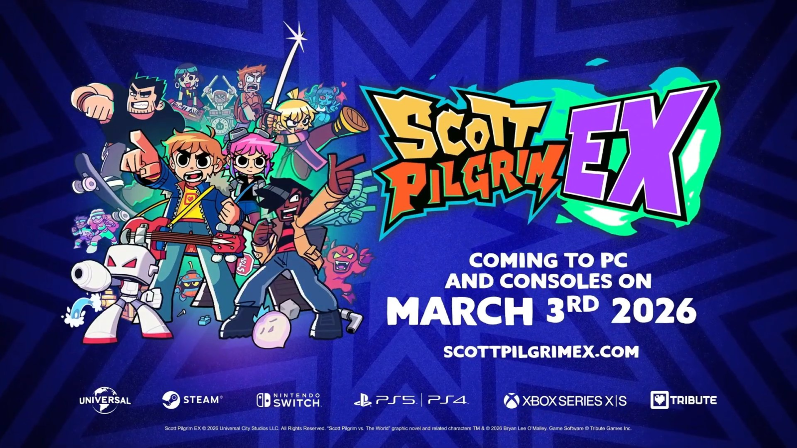 Scott Pilgrim EX será lançado digitalmente em 3 de março, com versões físicas previstas para um momento posterior. O título estará disponível para PlayStation, Xbox, PC e Nintendo Switch.