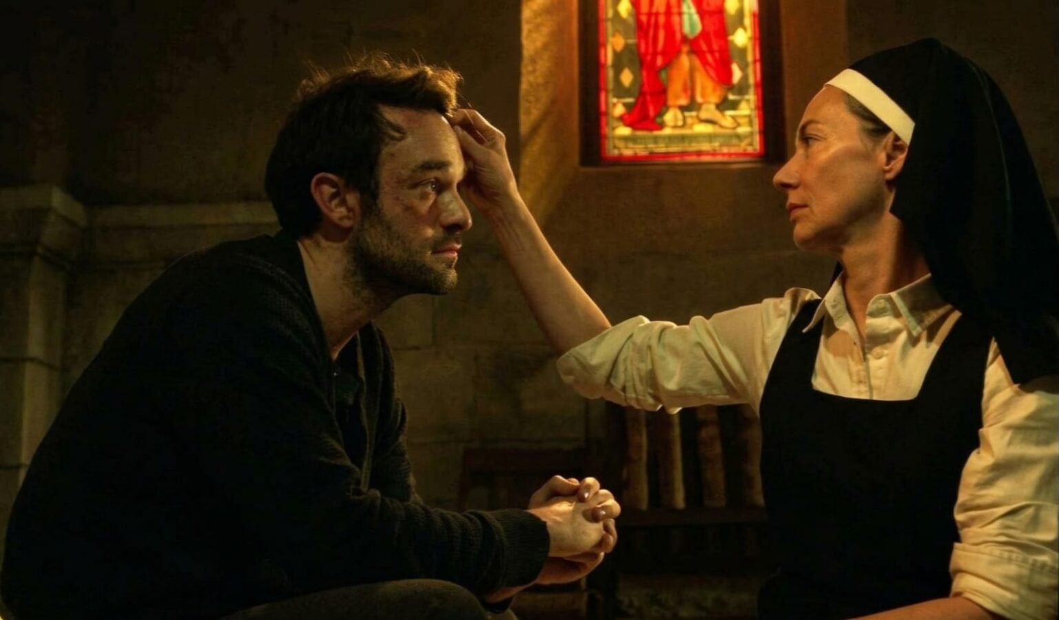 A história de Murdock é marcada por eventos que não apenas o feriram, mas o esculpiram. A perda do pai, o acidente químico e a violência constante de seu bairro não aparecem como tragédias vazias. Como irmã Maggie pondera em um diálogo com Matt, “Se Deus permitisse que corrigíssemos cada erro ou evitássemos cada dor do passado, o futuro perderia sua substância e o mundo seria um eterno rascunho de indivíduos tentando reconstruir o que já foi“
