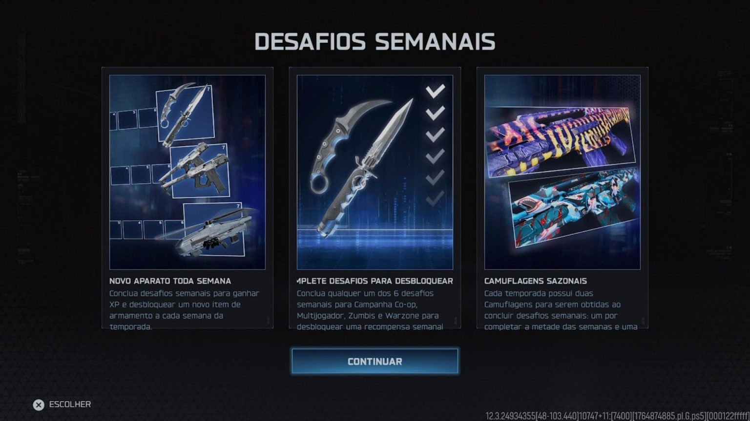 A primeira semana inclui desafios para quatro modos: Campanha Coop, Multiplayer, Zumbis e Warzone. Confira: