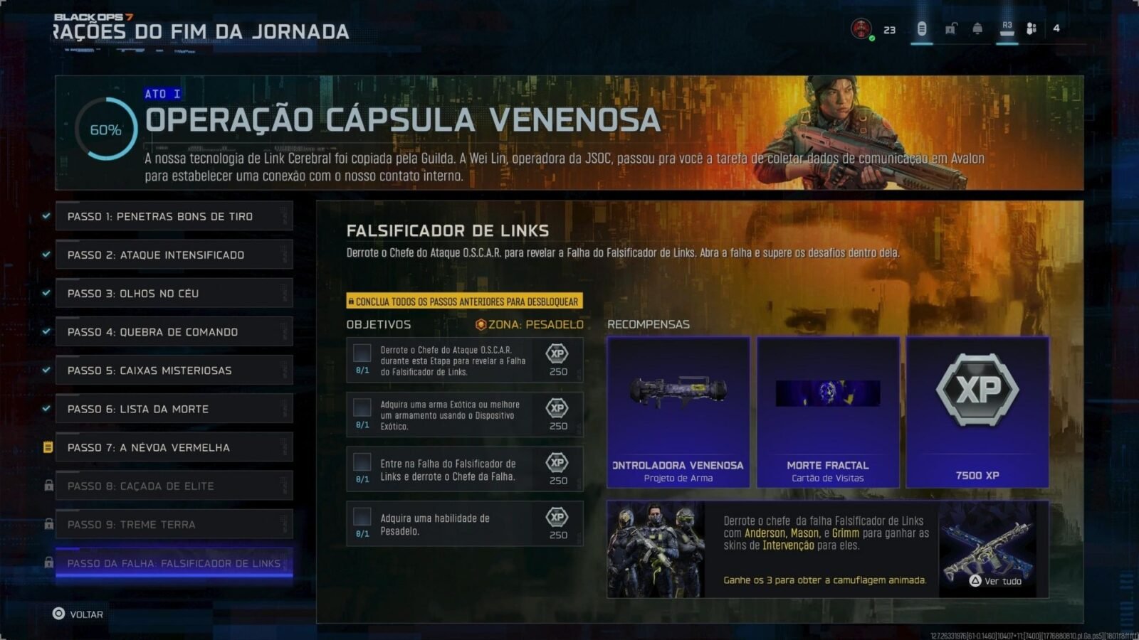 A Operação Cápsula Venenosa em Black Ops 7 é um dos principais conteúdos do Fim da Jornada na Temporada 3, trazendo uma sequência extensa de missões com recompensas gratuitas que vão de itens cosméticos até skins de Operador e camuflagens mais raras.