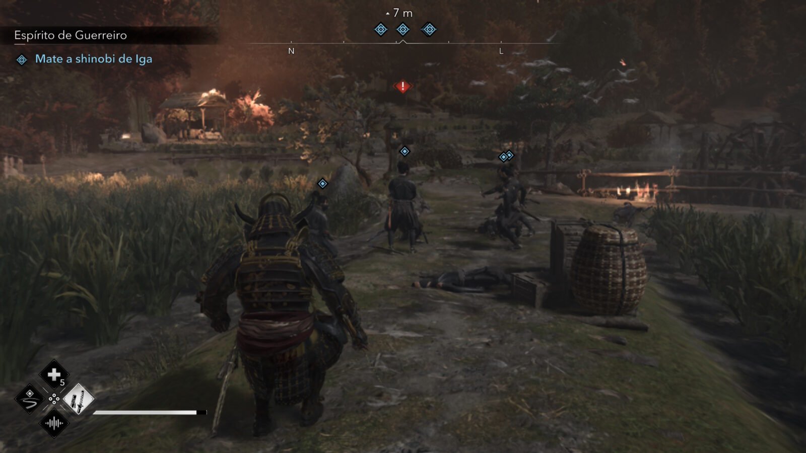 Um detalhe que pode afetar alguns jogadores é que, tanto no dock quanto no portátil, Assassin’s Creed Shadows roda travado em 30 quadros por segundo, sem qualquer opção para reduzir elementos gráficos e tentar alcançar 60 FPS. Para quem já está acostumado a jogar tudo nessa taxa mais alta, a sensação inicial pode estranhar, embora o jogo mantenha estabilidade na maior parte do tempo.