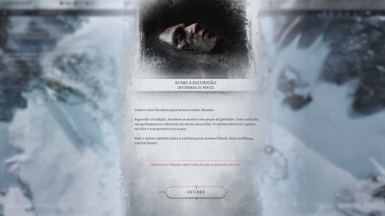 Claro que demora um bom tempo até você entender todas as funções de todos os botões e opções que o jogo proporciona, o nosso cursor agora é um analógico que não tem a mesma velocidade de um cursor, mas o jogo dá bastante facilidade para essas funções colocando uma espécie de “pause” e “fast-foward” onde o jogo dá uma pausa no seu tempo real para movermos o cursor e pensamos bem na nossa próxima ação, e tem essa função de dar uma acelerada no tempo, para que as coisas se construam rapidamente e o jogador não fica horas esperando uma construção acontecer, mas se você não se atentar, o tempo pode passar rápido demais e pode perder o controle do tempo que você gerencia, e os dias, os meses e os anos aqui em Frostpunk 2 são muito importantes.