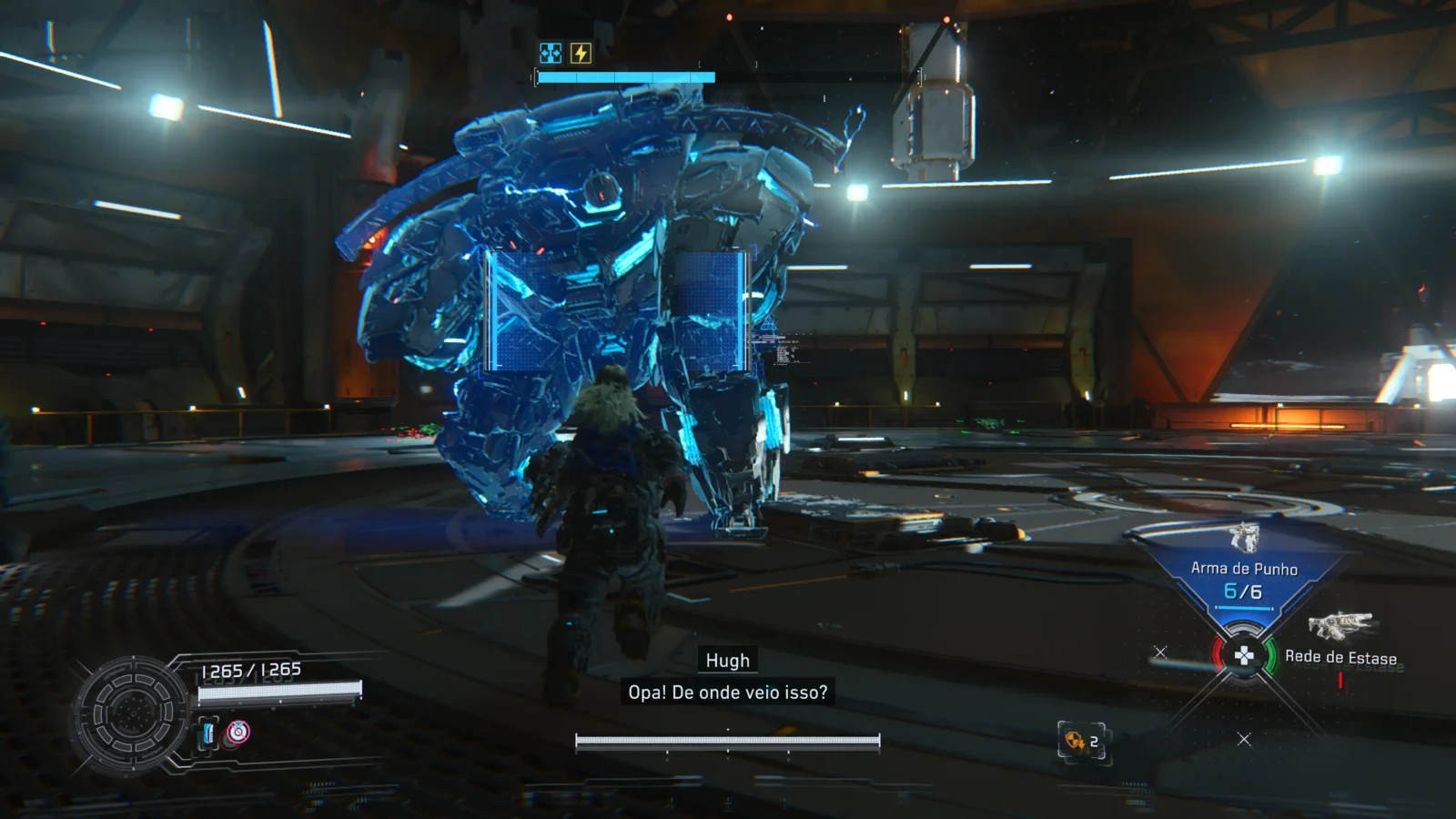 Do outro lado, Hugh traz uma jogabilidade mais tradicional. Ele pode carregar até quatro armas, sendo uma com munição infinita que exige um tempo de recarga, enquanto as demais são encontradas pelos cenários ou preparadas no abrigo antes das missões. Além disso, os propulsores ampliam a mobilidade, permitindo esquivas rápidas e o alcance de plataformas mais distantes.