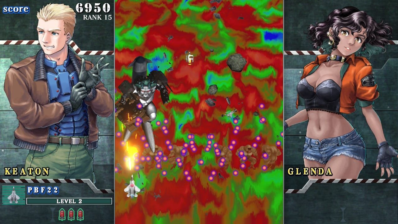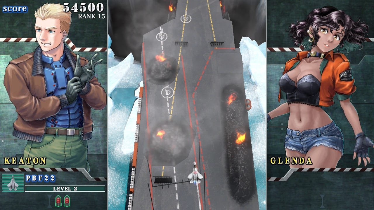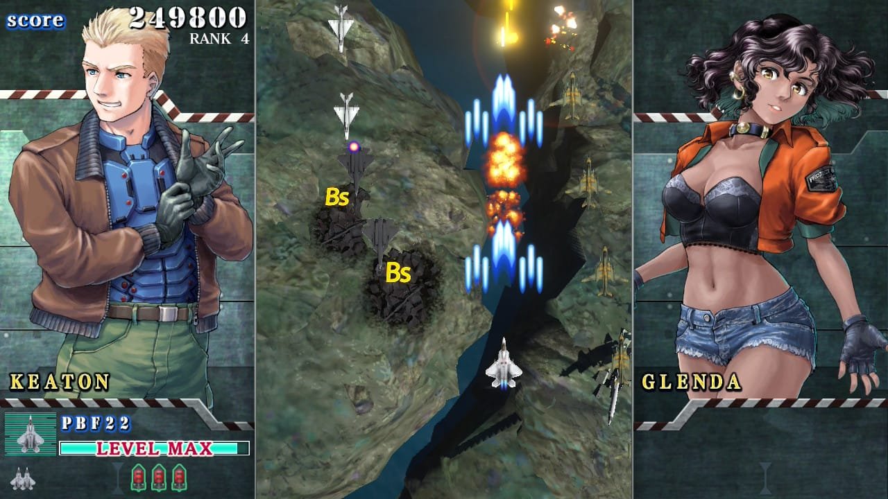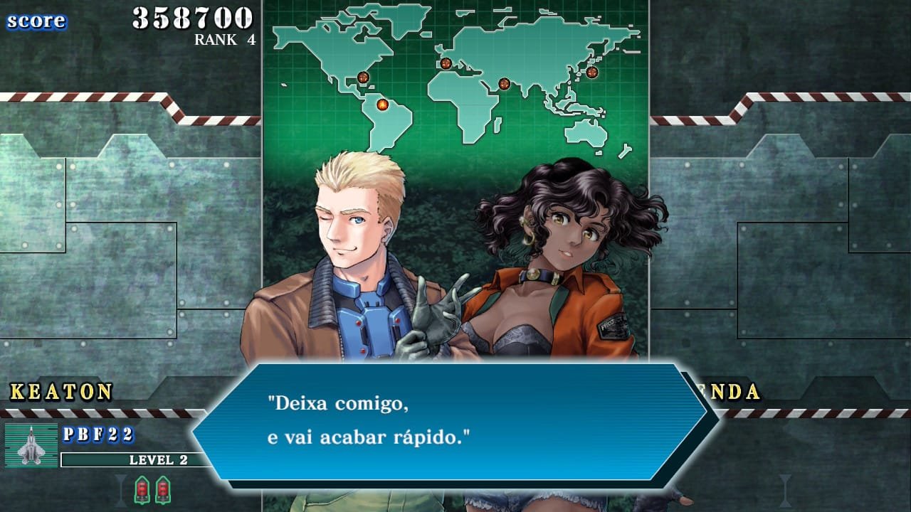 - Novidade zero: O sistema de upgrades das aeronaves permanece idêntico ao dos arcades da década de 1990. Funciona assim: colete um item flutuante para aumentar a potência do tiro e repita o processo sempre que morrer. Os ataques especiais também não trazem inovação — continuam sendo o clássico recurso de limpar toda a tela.