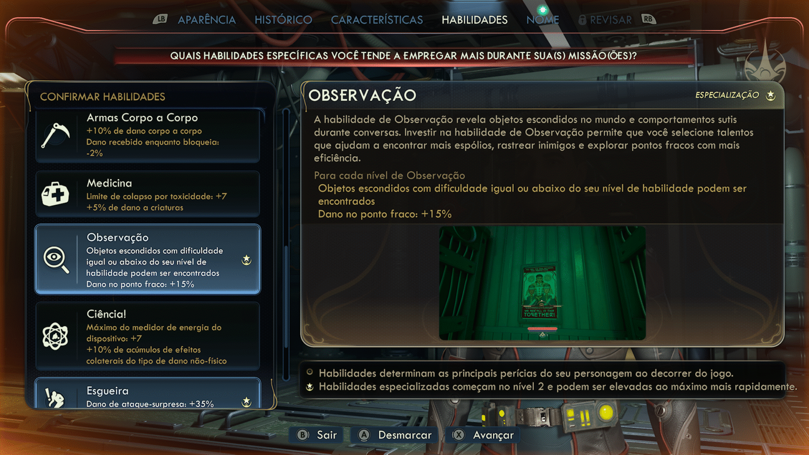 Robustez , por exemplo, permite que você derrube inimigos ao correr e abra portas quebradas sem gastar pontos de Engenharia ; uma mão na roda. Já a Genialidade é excelente para quem quer se especializar rapidamente, começando com habilidades já no nível dois.