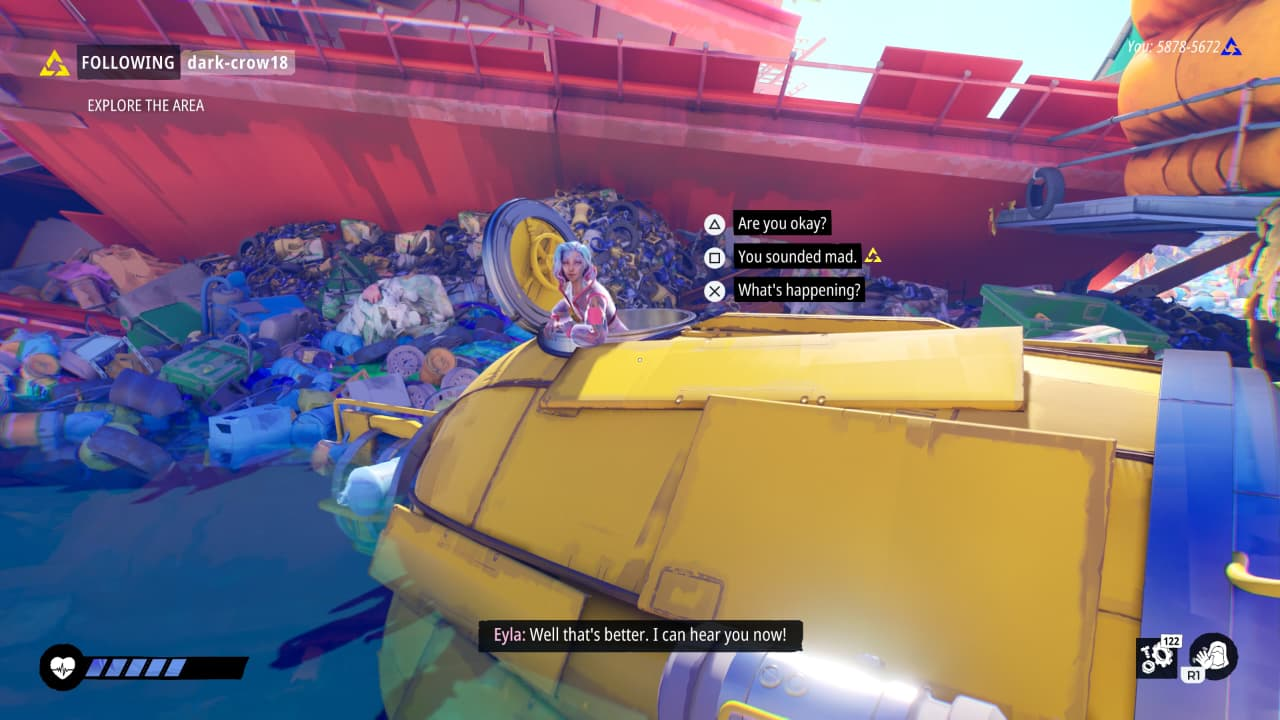 No decorrer da nossa jornada, vamos encontrando personagens importantes como Eyla – que está em um estado crítico de Plastemia e tem pouco tempo de vida, mas, apesar do desespero de seu estado, ela é extremamente pró-ambiental e coloca o estado das criaturas marinhas e o mundo em prioridade à sua própria saúde, e nos traz um dilema recorrente de buscar fazer a coisa certa, mesmo quando tudo parece sem solução.