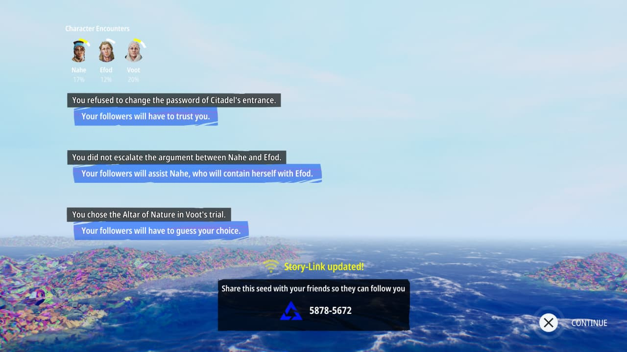 Essa mecânica acabou me engajando de formas que eu não imaginava com o jogo, o que me fez ficar genuinamente curioso a continuar a jornada, não só para saber o que o Tidewalker que eu seguia fazia no mundo, como também continuar a narrativa do mesmo.