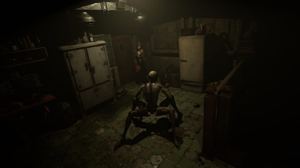O controle segue o estilo “tanque”, reforçando a vulnerabilidade de Caroline. A protagonista não é uma heroína de ação, e isso se reflete nos combates: a mira é travada e o impacto dos tiros pouco satisfatório, mesmo com escopeta ou pistola de pregos. Ainda assim, há variedade de armas, incluindo o martelo para arrombar portas, garantindo exploração e estratégia.
