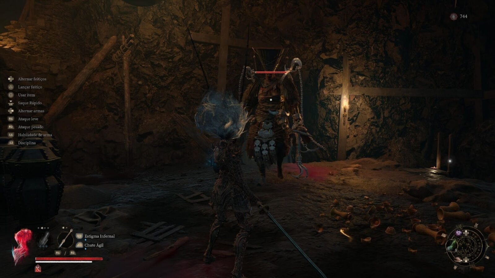 Portanto, morra com a Loucura cheia, e um demônio surge no local da morte, exigindo recuperar os pontos de Mercúrio Vermelho perdidos. Esse sistema cria tensão constante e força decisões estratégicas a cada combate.
