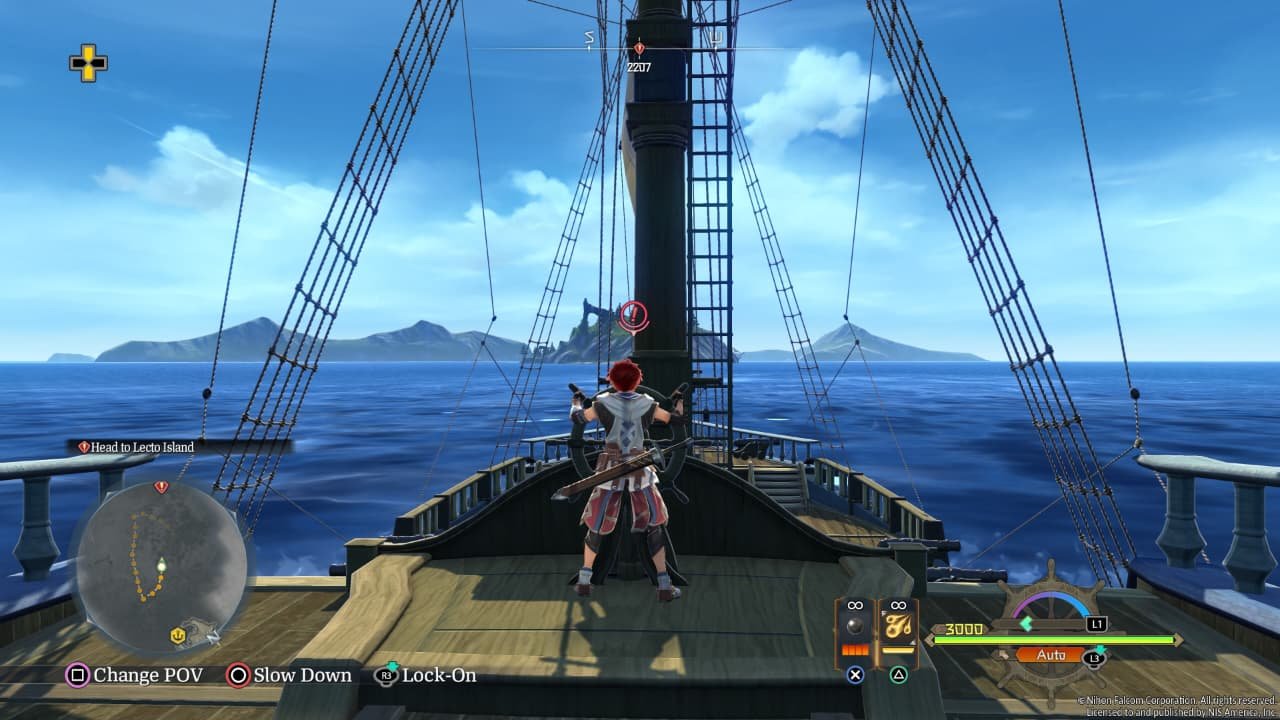 Além disso, há exploração de vilas com NPCs e um sistema de navegação marítima. É possível controlar um barco, explorar ilhas e participar de batalhas navais – simples, mas divertidas. Essas mecânicas foram aprimoradas em relação ao original, com melhorias na velocidade e no engajamento.