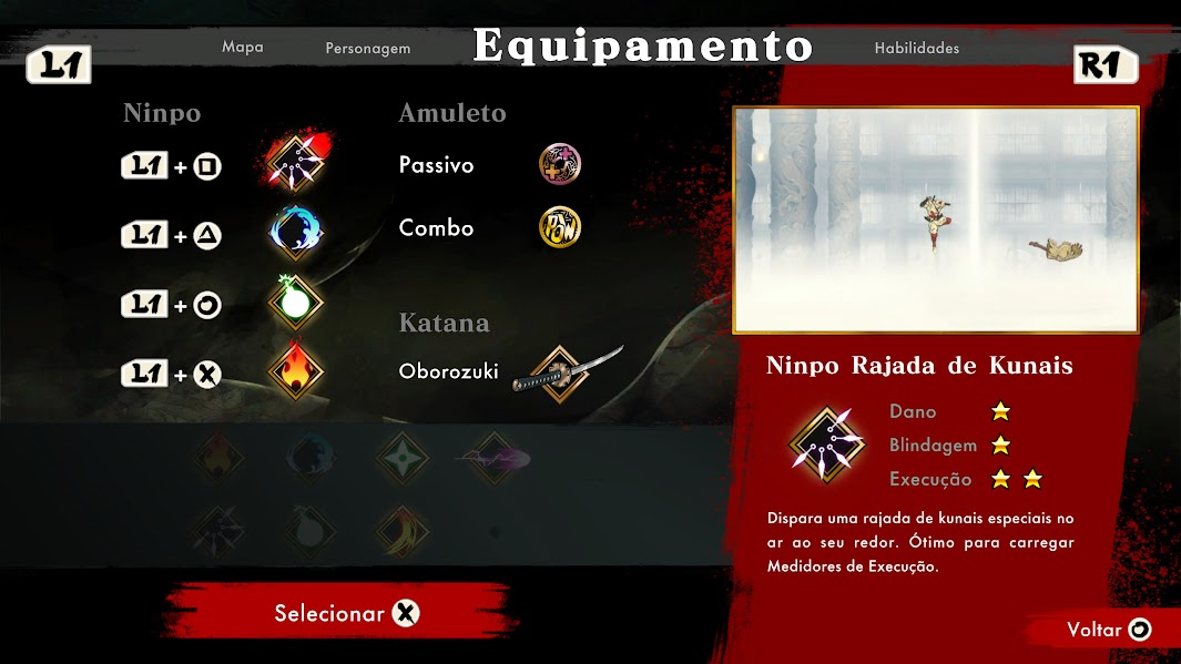 O combate em Shinobi: Art of Vengeance é variado, combinando ataques leves e pesados, Kunais e habilidades Ninpo com fluidez impressionante. O Medidor de Execução permite finalizar inimigos instantaneamente, acumulando recursos essenciais para habilidades e combos. Executar múltiplos inimigos ao mesmo tempo, aumenta a eficiência, recompensando o planejamento e a precisão.