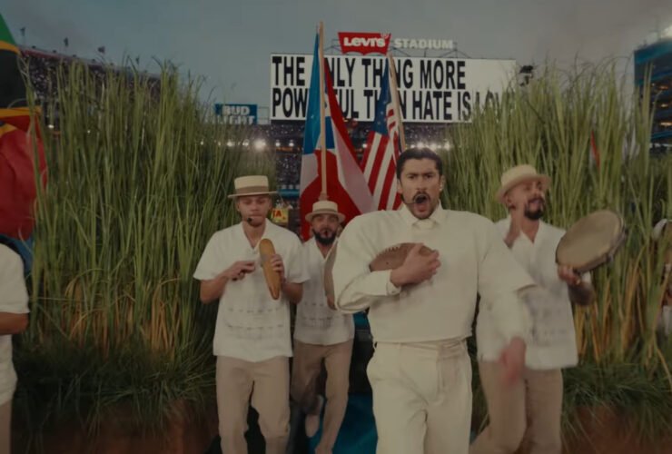 Bad Bunny celebra cultura latina com Lady Gaga e Ricky Martin no show do intervalo do Super Bowl neste domingo (8).